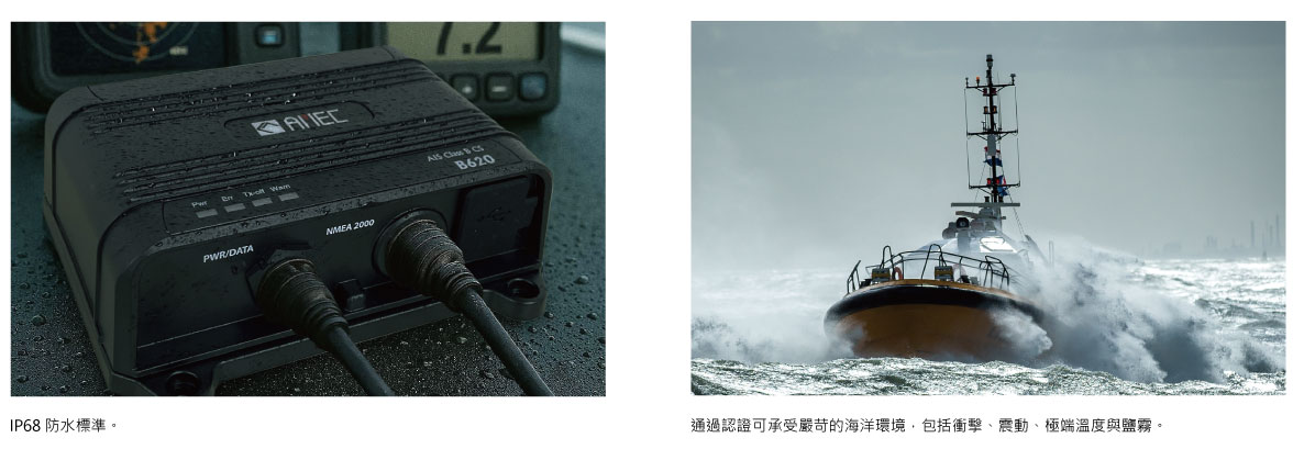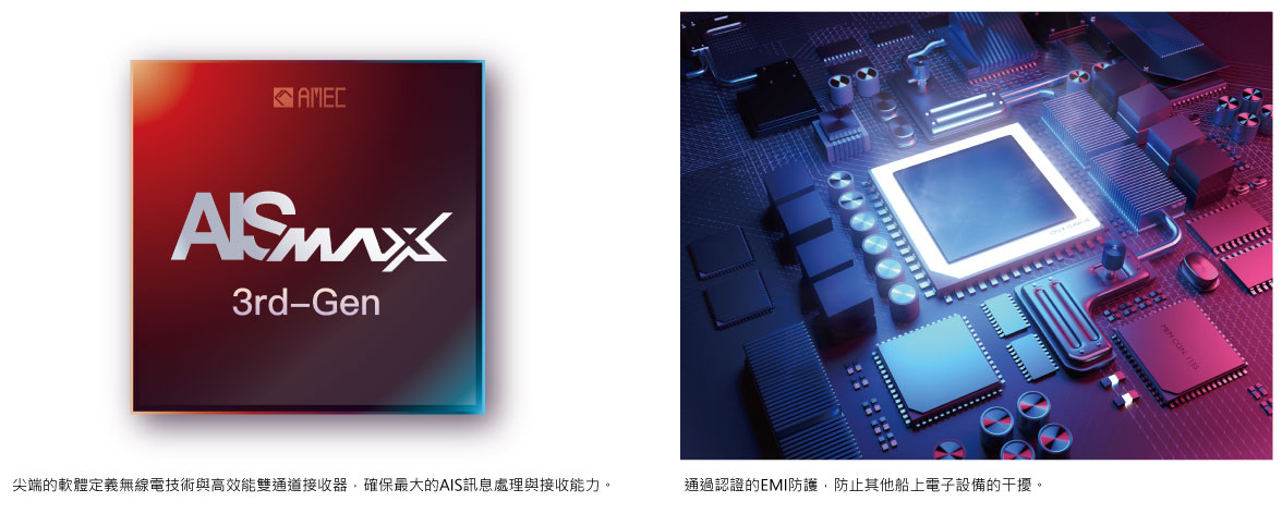 搭載 AMEC 第三代 AIS 引擎,B620 系列展現卓越的 AIS 性能、同級最佳 -111dBm 接收靈敏度,以及全球最低功耗。