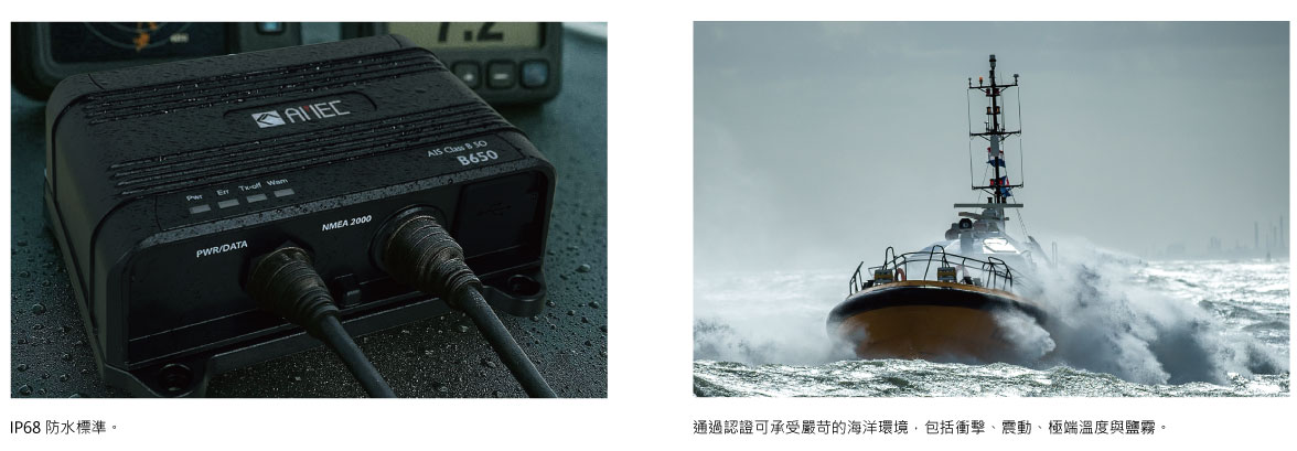 - 與標準 2W AIS Class B 應答器相比,B650系列具備更長的傳輸距離、更高的發報率,以及在繁忙區域更高的發射優先等級